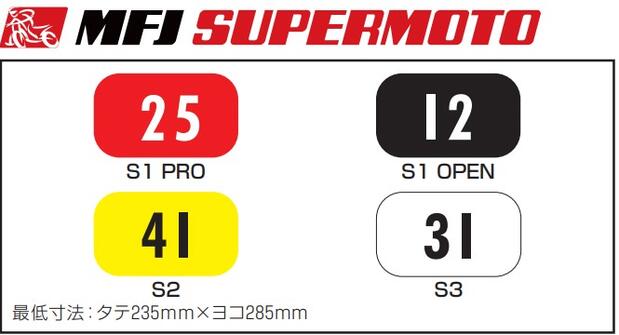 MFJ規則:フロントナンバーの寸法最低高:140mm 最低幅:70mm(1の場合 25mm) 数字の最低の太さ:25mm 数字間のスペース:15mm